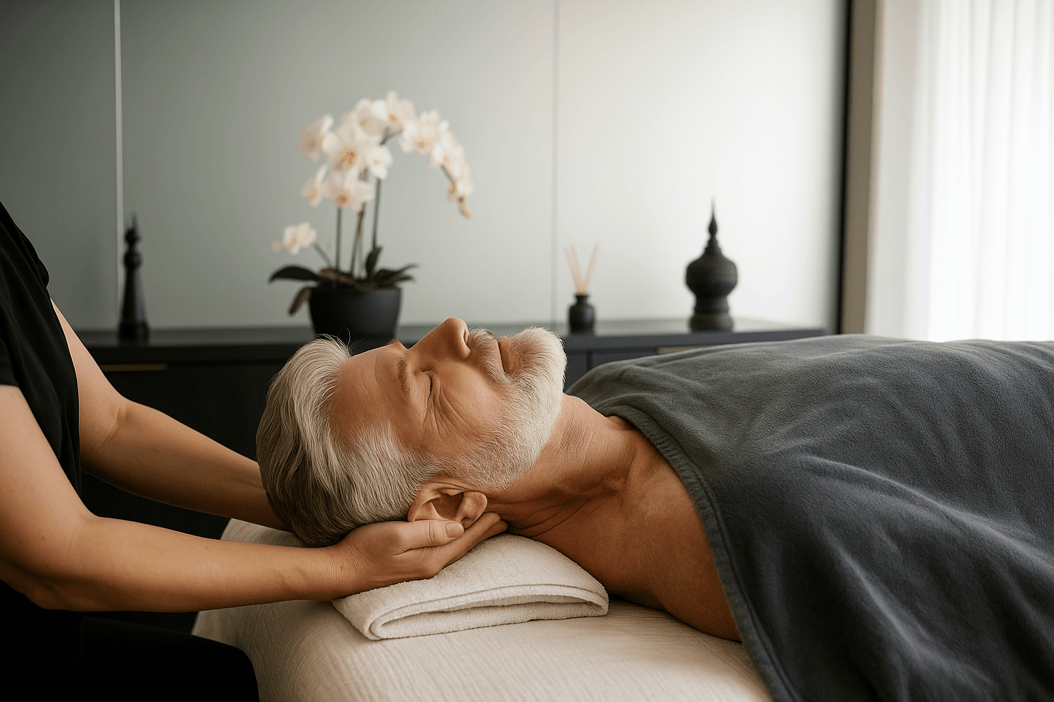 In meinen Sessions musst du nichts leisten, nichts kontrollieren, nichts beweisen. Du betrittst einen Raum, in dem kein Funktionieren erwartet wird – und in dem du endlich aus dem Kopf in deinen Körper sinken kannst. In Ruhe. In Präsenz. In echtes Spüren. Ich unterstütze dich dabei, Anspannung abzubauen, den Druck aus deinem System zu nehmen und Berührung zu empfangen, die nichts von dir verlangt. Dein Nervensystem darf zur Ruhe kommen, damit du wieder echte Verbindung spüren kannst – nicht-sexuell und trotzdem tief wirksam. Vielleicht glaubst du, du suchst sexuelle Nähe. Doch oft sucht dein Körper etwas anderes: Entlastung. Sicherheit. Einen Ort, an dem du nicht stark sein musst. Meine Arbeit ist nicht erotisch. Sie ist klar, regulierend und stabilisierend. Die Berührung bleibt in deinen Grenzen und folgt deiner Geschwindigkeit – damit du dich sicher fühlst und wirklich loslassen kannst. Wenn du wieder beginnst, dich selbst zu fühlen, verändert sich alles: deine Ruhe, deine Beziehung zu dir selbst, deine Präsenz und auch deine Sexualität.